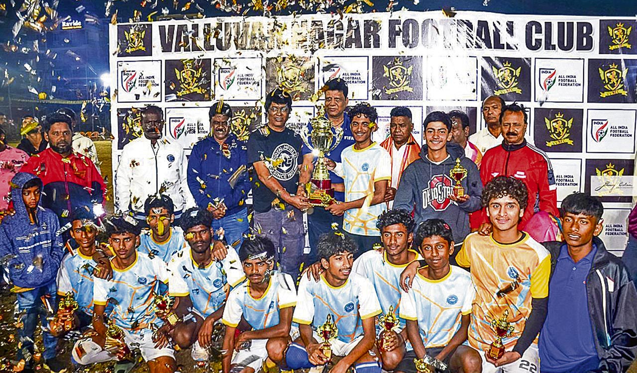 Hyderabad: City College Old Boys and Hubli FC won the under-15 and senior category titles in the Valluvarnagar Football Club prize money football tournament under lights at Valluvarnagar Stadium in Kapra.
