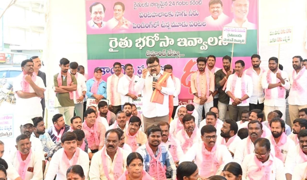 BRS leaders in Siddipet staged a protest demanding the immediate release of the Yasangi instalment of Rythu Bharosa. MLC Deshapathi Srinivas accused the State government of failing to implement promises made to farmers after coming to power.