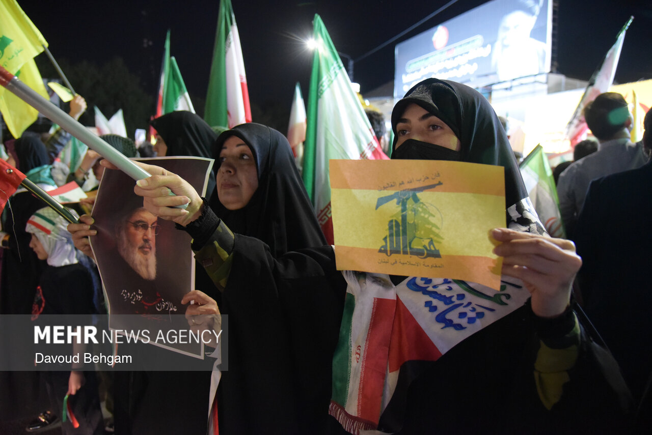 MASHHAD, Apr. 21 (MNA) – Strongly condemning the US and Israeli aggression against Iran, the martyr-fostering people in the shrine city of Mashhad renewed their allegiance with new Leader and showed their unity and solidarity with Lebanese people.