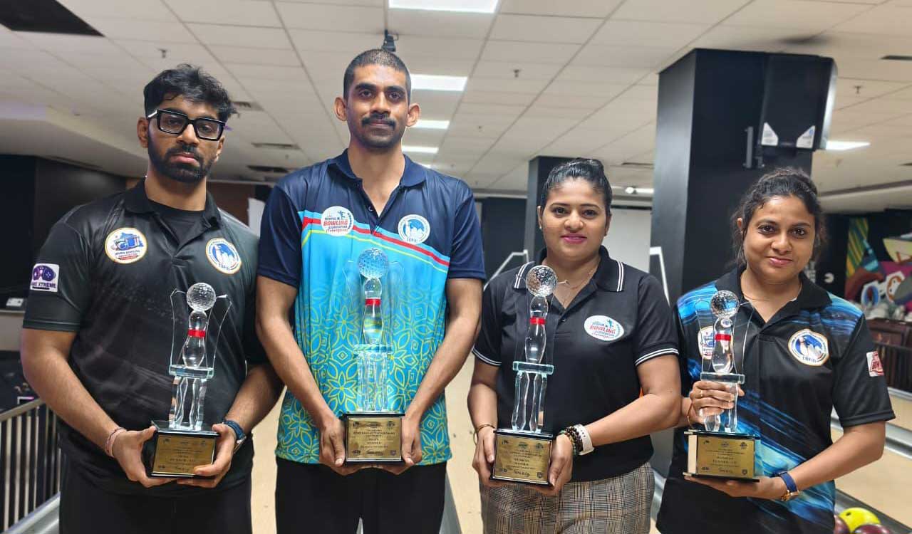 In the women’s division finals, played on the cumulative pinfall of two games, second-seeded Sruthi Adhini gained a 17-pin lead in the first game against top seed Sindhura (131-114) and then consolidated her lead in the second game, scoring 142 against 132 by Sindhura. Sruthi won the title with a margin of 27 pins (273-246).