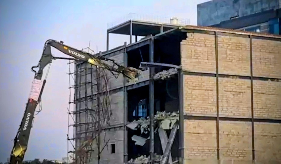 اسی کے تحت پیر کی صبح حکام نے کارروائی کرتے ہوئے پولیس بندوبست کے درمیان بغیر اجازت تعمیر کیے گئے چار شیڈز اور زیرِ تعمیر عمارت کو منہدم کر دیا۔