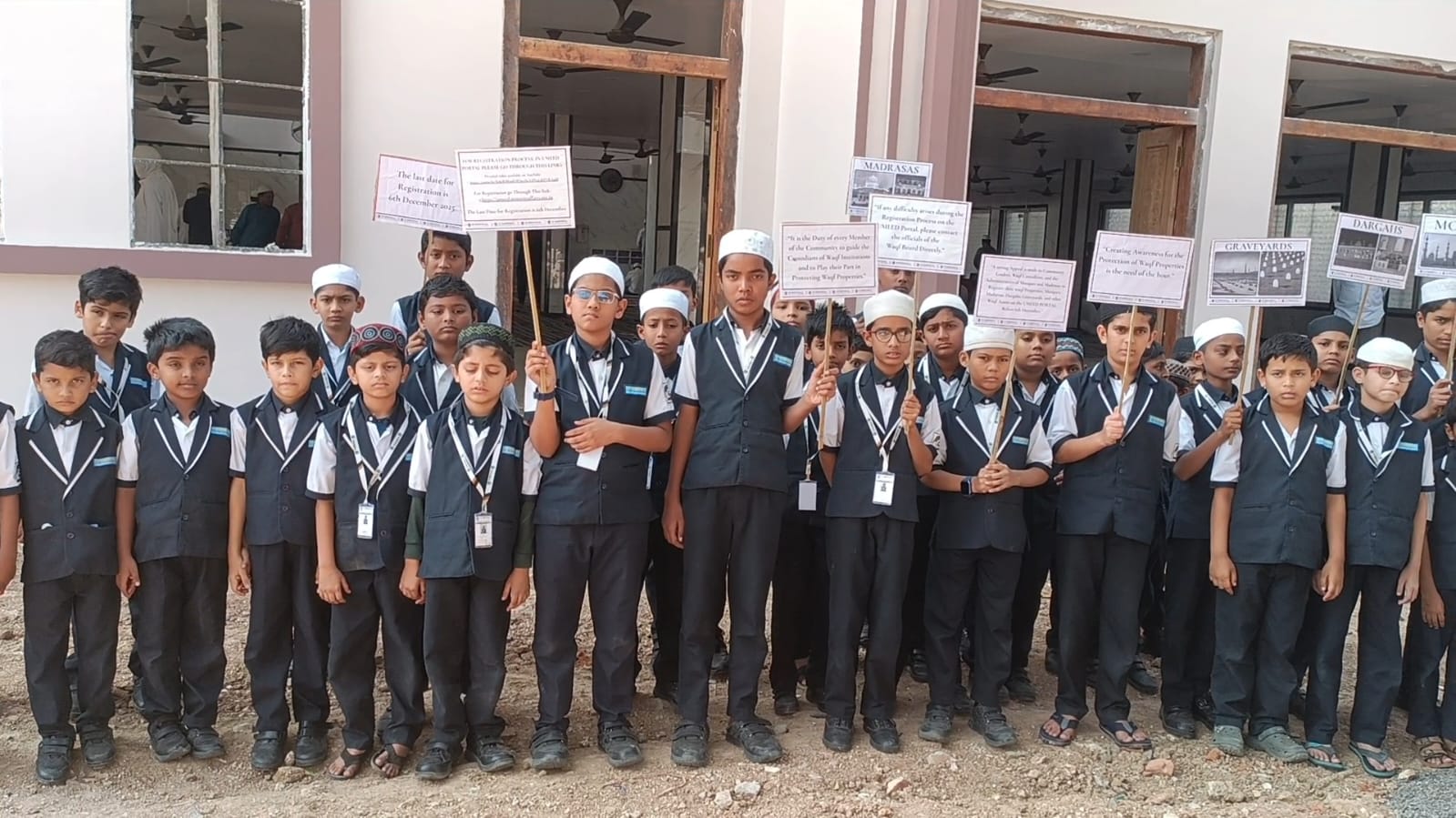 وزڈم، دی اسکول آف ایکسیلنس کے طلبہ کا قابلِ ستائش اقدام — مسجدِ کوثر کے باہر اوقافی جائیدادوں کے تحفظ کے لیے آگاہی پروگرام