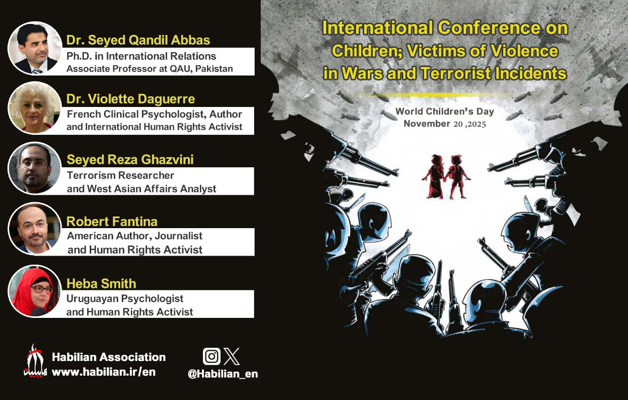 مہر خبررساں ایجنسی کی رپورٹ کے مطابق، ہابیلیان ایسوسی ایشن نے یوم اطفال کے موقع پر “بچے جنگ اور دہشت گردی کا شکار” کے عنوان سے ایک اہم بین الاقوامی نشست منعقد کی، جس میں پاکستان، فرانس، ایران، امریکہ اور یوروگوائے سے ماہرین اور محققین نے شرکت کی۔ مقررین نے جنگوں اور دہشت گردی کے دوران بچوں پر ہونے والے مظالم، عالمی اداروں کی بے حسی اور دوہرے معیار پر شدید تشویش کا اظہار کیا۔