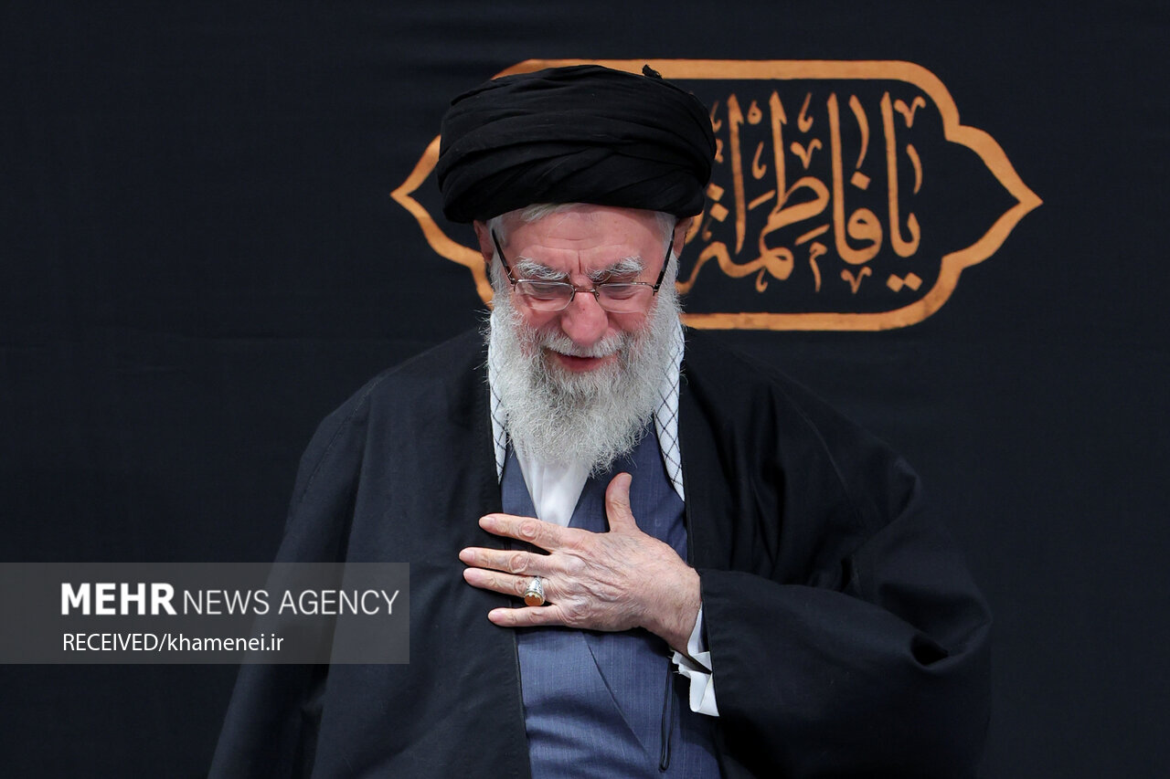 حسینیہ امام خمینیؒ تہران میں مجلسِ عزاء کے دوران رہبر معظم انقلاب کی آمد، حسینیہ میں 'حیدر حیدر'