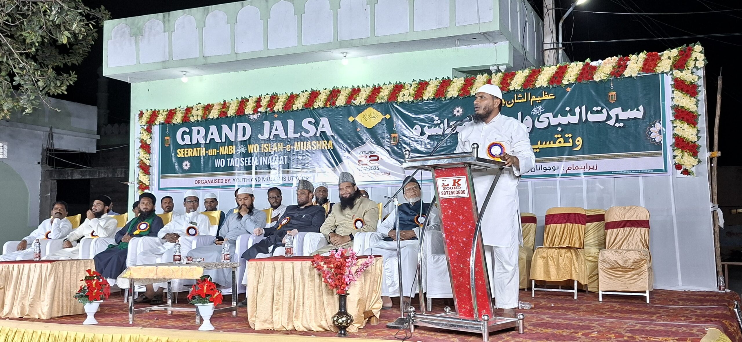 جامع مسجد پنچ میدان اوٹکور میں ہفتہ کو نوجوانان و مسلمانانِ اوٹکور کے زیرِ اہتمام “سیرت النبی ﷺ و اصلاحِ معاشرہ” کے عنوان سے ایک عظیم الشان اجلاسِ عام منعقد ہوا، جس کی صدارت حضرت مولانا پی ایم مزمل صاحب رشادی والا جاہی بنگلور نے فرمائی۔