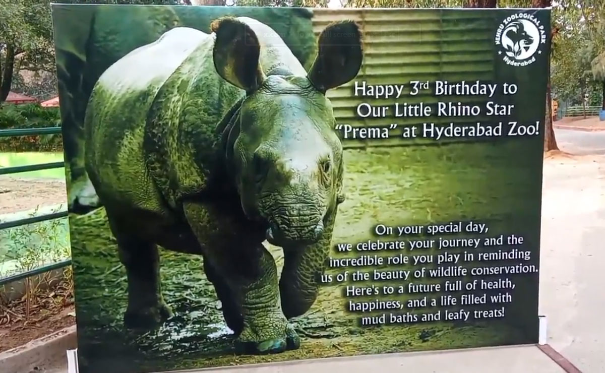 حیدرآباد: حیدرآباد کے نہرو زولوجیکل پارک میں ایک گینڈے، جسے پریما کے نام سے جانا جاتا ہے، کی سالگرہ بڑے شاندار طریقہ سے منائی گئی۔
