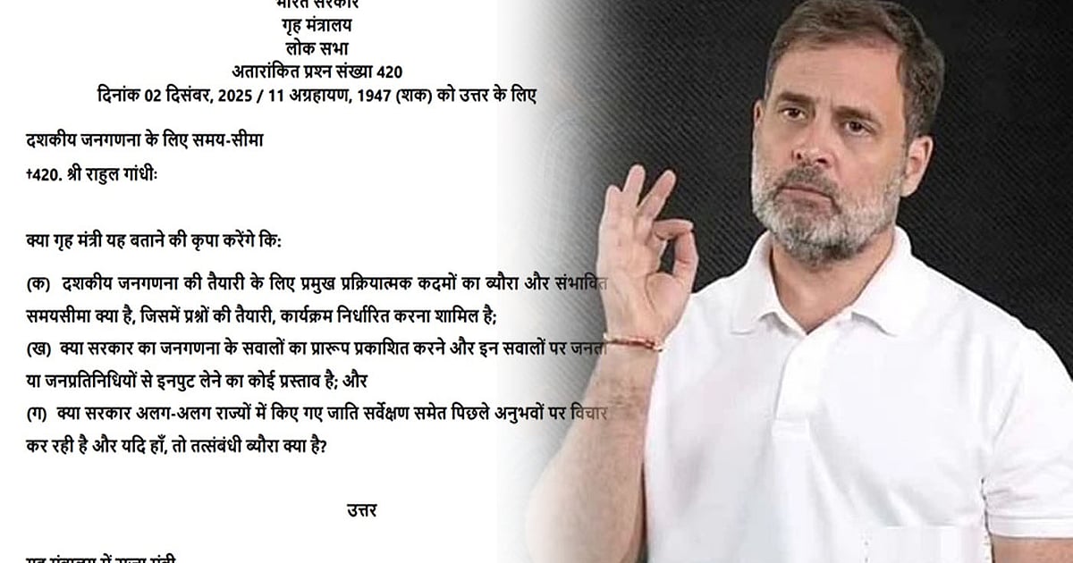 راہل گاندھی نے جو سوال لوک سبھا میں رکھا تھا، وہ تین نکات پر مبنی تھا۔ دس سالہ مردم شماری کی تیاری کے مراحل، اس کی پیش رفت اور ممکنہ ٹائم لائن کیا ہے؟ کیا حکومت مردم شماری کے سوالنامے کا ڈرافٹ عوام کے سامنے لا کر تجاویز لینے کا ارادہ رکھتی ہے؟ اور کیا حکومت ان ریاستوں کے تجربات پر غور کر رہی ہے جنہوں نے ذات پر مبنی سروے کیے ہیں، اور اگر ہاں تو تفصیل کیا ہے؟