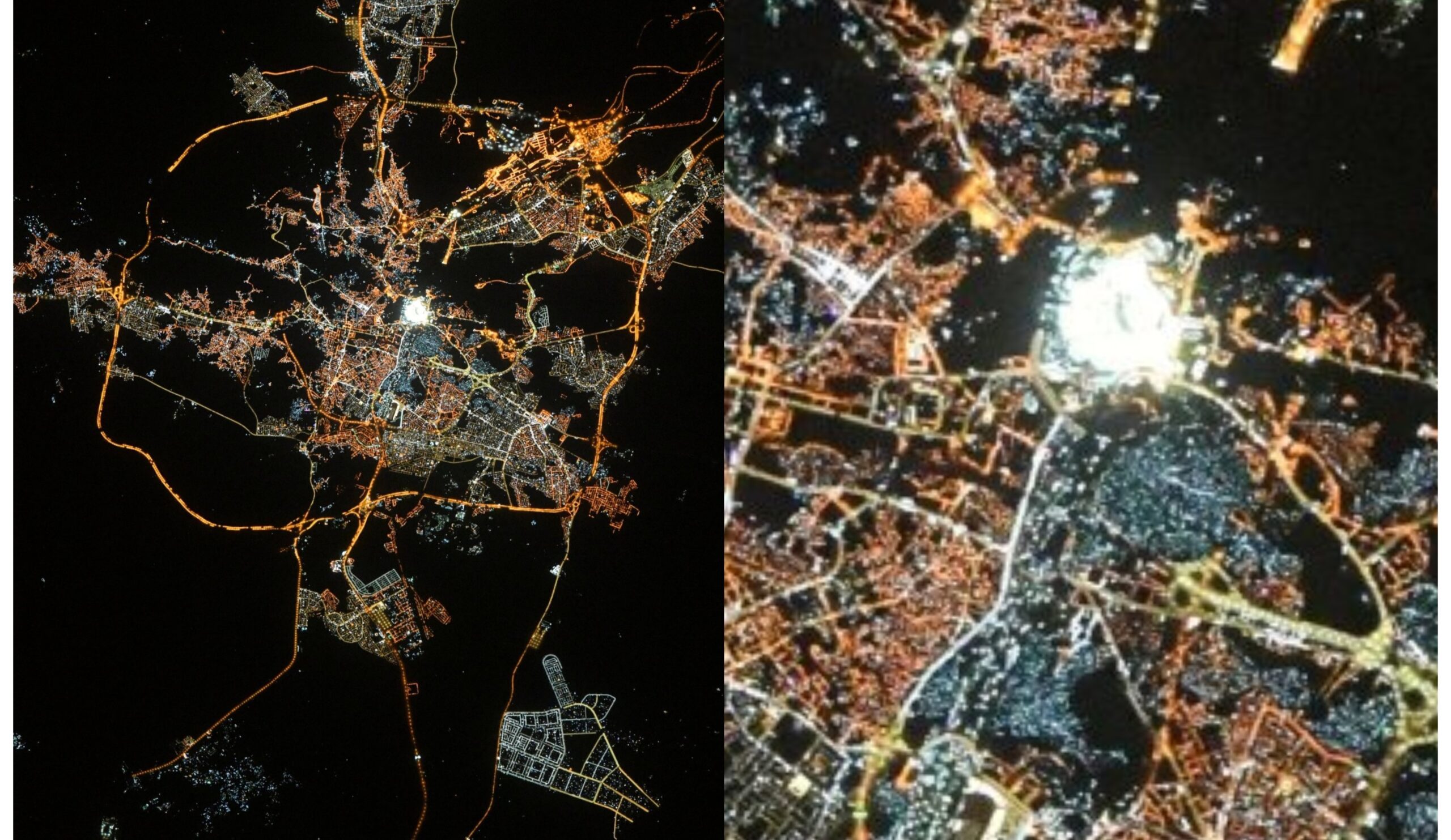اس غیر معمولی منظر کو امریکی خلا باز ڈان پیٹیٹ نے بین الاقوامی خلائی اسٹیشن کے اپنے مشن کے دوران قید کیا۔ انہوں نے اس نادر لمحے کو ہائی ریزولوشن نیوکن کیمرے کے ذریعے محفوظ کیا اور تصویر شیئر کرتے ہوئے لکھا کہ: “یہ سعودی عرب کے شہر مکہ کا خلاء سے لیا گیا منظر ہے، درمیان میں جگمگاتی روشنی کعبہ شریف ہے جو خلاء سے بھی دکھائی دیتا ہے۔