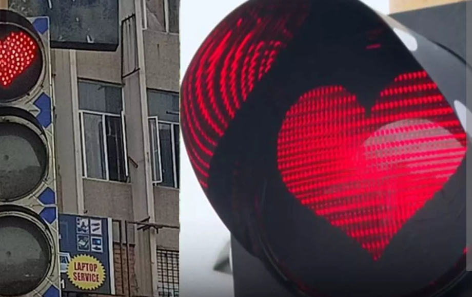چینئی: چینئی شہر کے مختلف اہم چوراہوں پر ٹریفک سگنل کی سرخ بتی پر دل کے شکل والے اسٹیکرس چسپاں کیے گئے ہیں۔ جیسے ہی ریڈ سگنل جلتا ہے سرخ بتی انوکھے انداز میں دل کی شکل میں نظر آتی ہے۔ ٹریفک قوانین کے