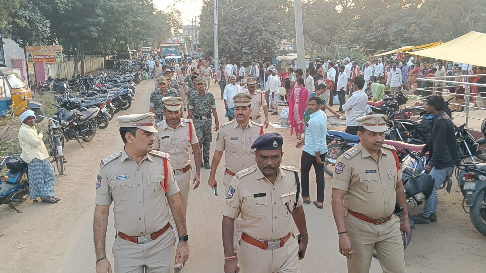 نظام آباد 6/ ڈسمبر (نیوز اینڈ ویوز میڈیا سرویس)آئندہ پنچایت راج انتخابات کے پیش نظر نظام آباد پولیس کمشنر سائی چیتنیا، احکامات پر نظام آباد کمشنریٹ کے تحت بودھن رورل پولیس اسٹیشن کے حدود میں واقع سالورہ منڈل میں پولیس کا فلیگ مارچ کا انعقاد کیا گیا۔جسکا مقصد عوام میں اعتماد پیدا کرنے، امن و سلامتی کو برقرار رکھنے اور گرام پنچایت انتخابی عمل کے دوران کسی بھی ناخوشگوار واقعے کو روکنے کے لیے کیا گیا تھا۔