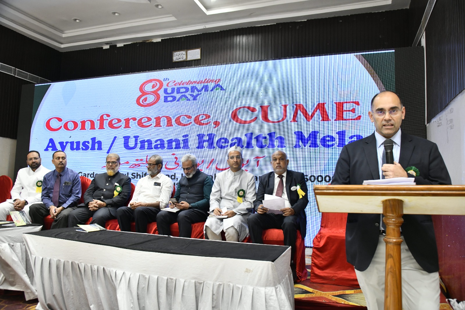 مینوفیکچررس کمپنیوں کے نمائندے اور مختلف اداروں کے اعلی عہدیدار شریک تھے۔ ڈاکٹر یونس منشی ڈپٹی ڈائریکٹر جنرل سنٹرل کونسل آف ریسرچ یونانی میڈیسن دہلی، ڈاکٹر محمد خالد اے ڈی سی یونانی اینڈ لائسنسنگ اتھاریٹی دہلی، ڈاکٹر نبیل احمد جنرل سکریٹری اڈما، پدم شری ڈاکٹر ایم اے وحید سابق ڈائریکٹر سی سی آئی یو ایم، ڈاکٹر رحمن، ڈاکٹر شکیب اور آرگنائزنگ سکریٹری حکیم وڈاکٹر غلام محی الدین اورحکیم ارباب الدین صدر لیباریٹیز شہ نشین پر موجود تھے۔ ڈاکٹر حامد احمد