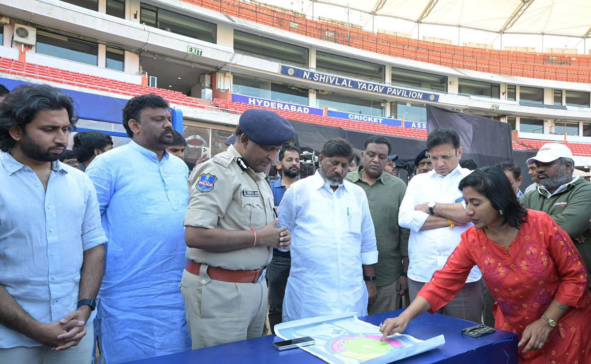 پولیس اور حیدرآباد کرکٹ ایسوسی ایشن کے حکام نے نائب وزیراعلی کو اسٹیڈیم اور اس کے گرد و نواح میں کئے جانے والے انتظامات کے بارے میں تفصیلات سے واقف کروایا۔ انہوں نے میسی کی آمد کیلئے مختص راستوں کا بھی جائزہ لیا، وزیراعلی، وزرا اور دیگر اہم شخصیات کے لیے بھی خصوصی انتظامات کئے گئے۔