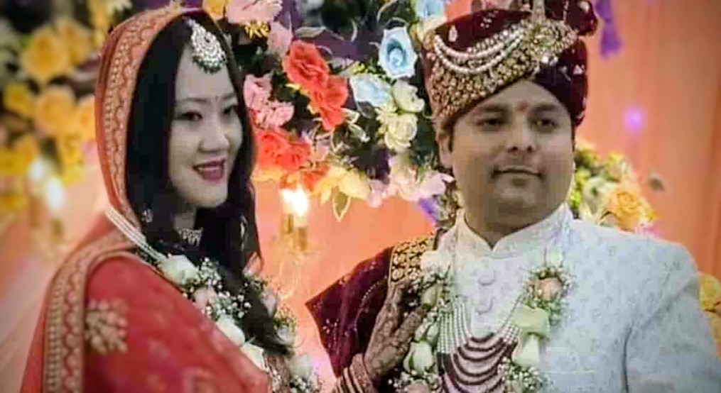 نئی دہلی: چین کے صوبے ہائی وے سے تعلق رکھنے والی چیاؤ ژاؤ اپنے ہندوستانی عاشق چندن سنگھ سے شادی کے لیے ہزاروں کلومیٹر کا سفر طے کر کے ہندوستان پہنچی۔ 6 دسمبر کو اس جوڑے نے صاحب گنج کے ونائک ہوٹل میں ویدک رسومات کے ساتھ شادی کی۔