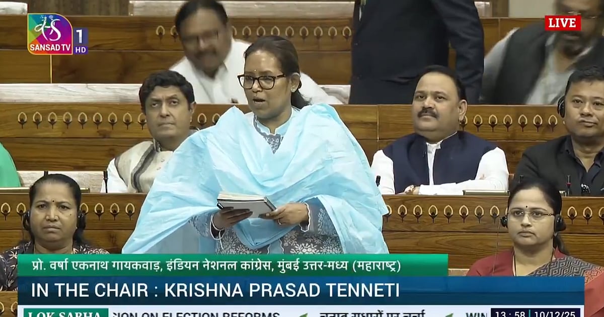 لوک سبھا میں آج دوسرے دن بھی ’انتخابی اصلاحات‘ پر زوردار بحث دیکھنے کو ملی۔ اپوزیشن اراکین پارلیمنٹ نے ایس آئی آر کے ساتھ ساتھ الیکشن کمیشن کے رویہ پر بھی سوال اٹھایا اور برسراقتدار طبقہ کو بھی نشانے پر لیا۔ مہاراشٹر سے کانگریس کی لوک سبھا رکن ورشا گائیکواڈ نے تلخ انداز اختیار کرتے ہوئے کہا کہ ’’جب بھی راہل گاندھی جی نے کسی ایشو پر آواز اٹھائی ہے، حکومت کو گھٹنے ٹیکنے پڑے ہیں۔‘‘