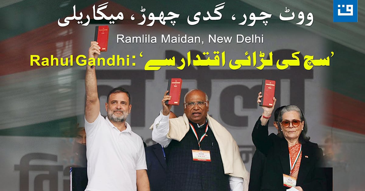 نئی دہلی: کانگریس نے دہلی کے رام لیلا میدان میں ’ووٹ چور گدی چھوڑ‘ کے عنوان سے ایک میگا ریلی کا انعقاد کیا، جس میں ملک بھر سے پارٹی کے سینئر قائدین، اراکینِ پارلیمنٹ اور بڑی تعداد میں کارکنان شریک ہوئے۔ ریلی کا مرکزی موضوع ووٹ چوری، انتخابی عمل میں شفافیت اور جمہوری اداروں کے تحفظ کا مطالبہ تھا۔