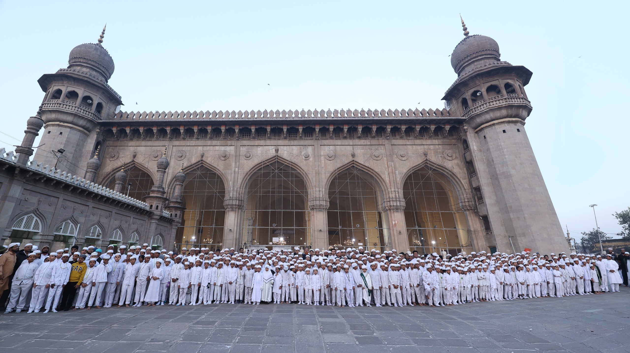حیدرآباد، 15 دسمبر 2025—(پریس ریلیز)چودہ ڈسمبربروز اتوارصبح صادق، جب سردی اپنے عروج پر تھی، مکہ مسجد کا صحن ایک غیر معمولی روحانی کیفیت کا منظر پیش کر رہا تھا۔ چھوٹے چھوٹے لڑکے، جن میں بعض سردی کے باعث کانپتے ہوئے نظر آ رہے تھے، اپنے والدین کے ہمراہ نماز فجر کے لئےوقت مقررہ سے قبل مسجد پہنچے۔ والدین کے چہروں پر جذبہ، عزم اور خوشی نمایاں تھی، جبکہ بچوں کے اندر جوش و خروش اور عبادت کے لیے آمادگی صاف جھلک رہی تھی۔