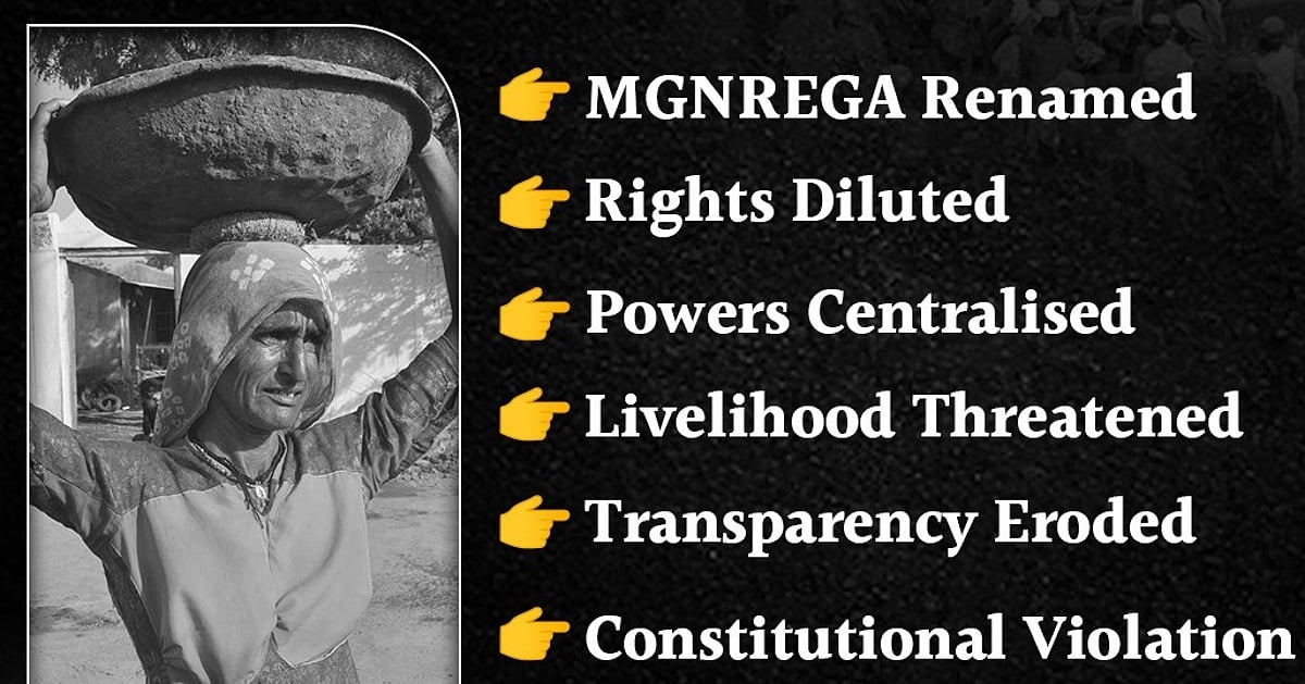 ’’کانگریس کا منریگا کو لانے اور نافذ کرنے میں بڑا تعاون تھا۔ یہ ملک اور عوام کے مفاد سے جڑا منصوبہ تھا۔ مودی حکومت نے اس قانون کو کمزور کر کے ملک کے کروڑوں کسانوں، مزدوروں اور بے زمین دیہی طبقہ کے غریبوں کے مفادات پر حملہ کیا ہے۔ اس حملے کا مقابلہ کرنے کے لیے ہم سب تیار ہیں۔‘‘ یہ بیان کانگریس پارلیمانی پارٹی کی چیئرپرسن سونیا گاندھی نے آج صبح جاری ایک ویڈیو پیغام میں دیا تھا۔ اب کانگریس نے منریگا کے خلاف اٹھائے گئے مودی حکومت کے قدم کو پیچھے دھکیلنے کا عزم کر لیا ہے۔ کانگریس نے مختلف ریاستوں میں پریس کانفرنس کر منریگا کی جگہ لائے گئے ’جی رام جی‘ قانون کی خامیاں، اور اس کے پیچھے پوشیدہ سازشوں کو سامنے رکھا ہے۔