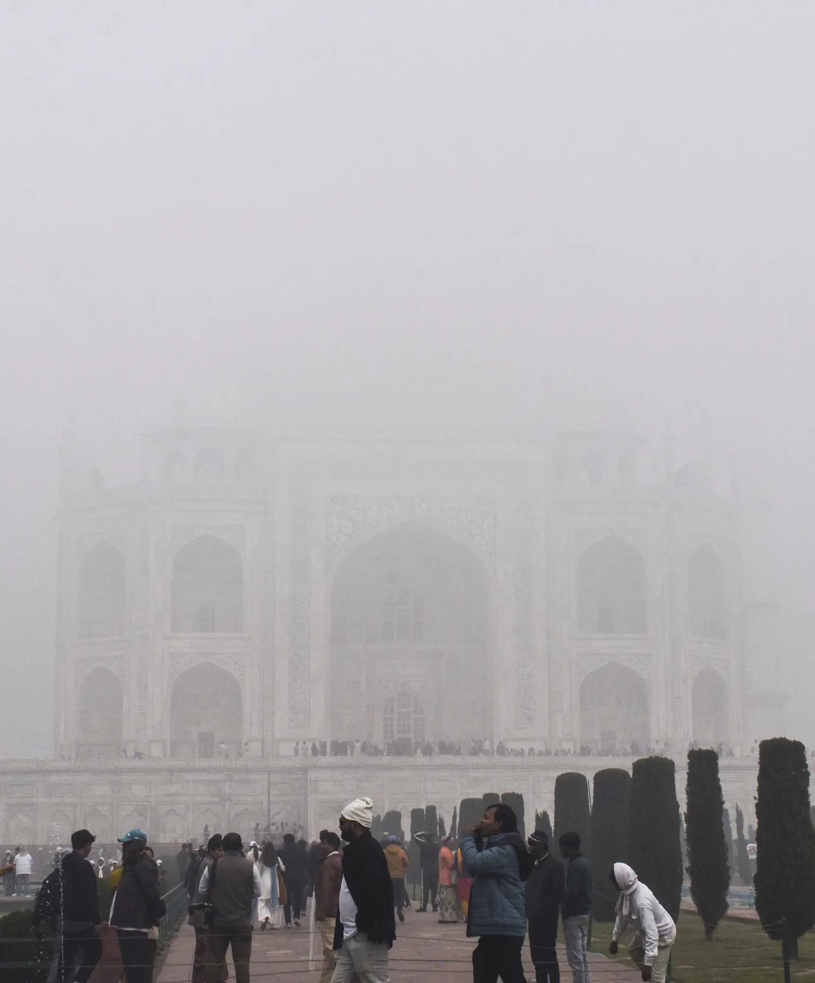جس سے عام زندگی، صحت اور ٹریفک پر براہ راست اثر پڑا۔اس دوران اتر پردیش کے آگرہ شہر میں صبح کے وقت شدید کہرے کی چادر اس قدر حاوی رہی کہ اس نے عالمی شہرت یافتہ تاج محل کو ہی منظر سےغائب کردیا۔ تاج ویو پوائنٹ (اے ڈی اے) سے آنے والے مناظرمیں یادگار کہرے کے پیچھے چھپی ہوئی نظرآئی