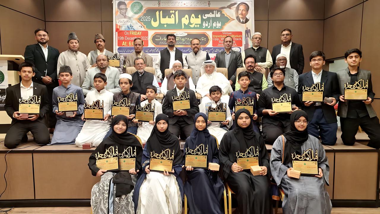 اقبال اکیڈمی جدہ کے زیرِ اہتمام امپیریئم آڈیٹوریم میں عالمی یومِ اردو اور یومِ اقبال 2025 کی شاندار اور پُروقار تقریب کا انعقاد عمل میں آیا۔ اس تقریب میں جدہ کے مختلف انٹرنیشنل اسکولز کے طلبہ و طالبات نے شرکت کی اور اردو زبان و علامہ اقبالؒ کی فکری عظمت کو خراجِ عقیدت پیش کیا۔