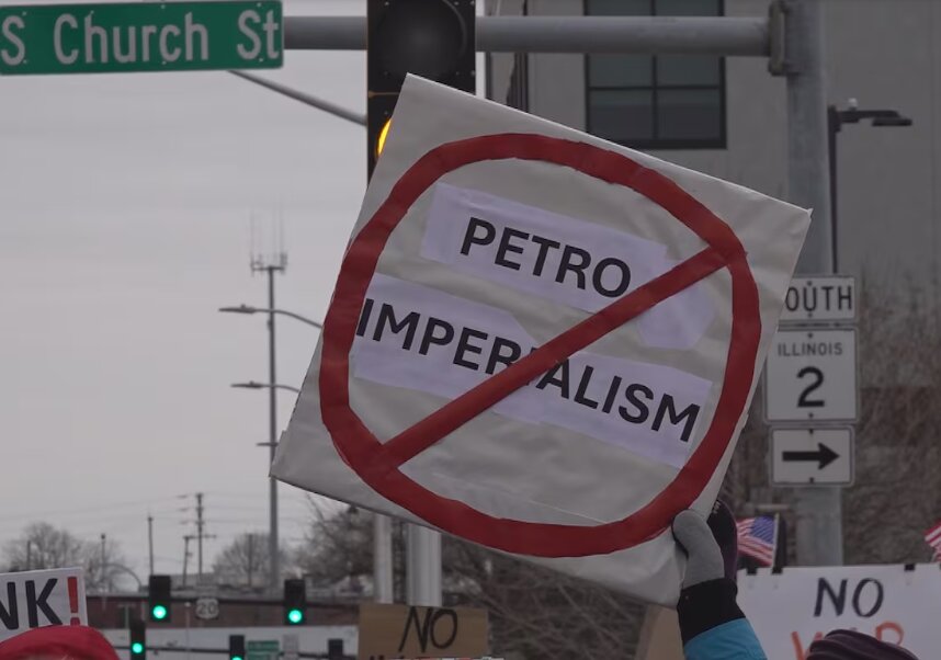 تفصیلات کے مطابق امریکی ریاست الینوائے کے شہر راکفورڈ میں عوام کی بڑی تعداد نے وینزویلا کے خلاف ٹرمپ کی فوجی کارروائی پر احتجاجی مظاہرہ کیا۔ مظاہرین نے وینزویلا کے خلاف جنگ نامنظور کے نعرے لگاتے ہوئے امریکی حکومت کی مداخلت پسندانہ پالیسیوں کی شدید مذمت کی۔