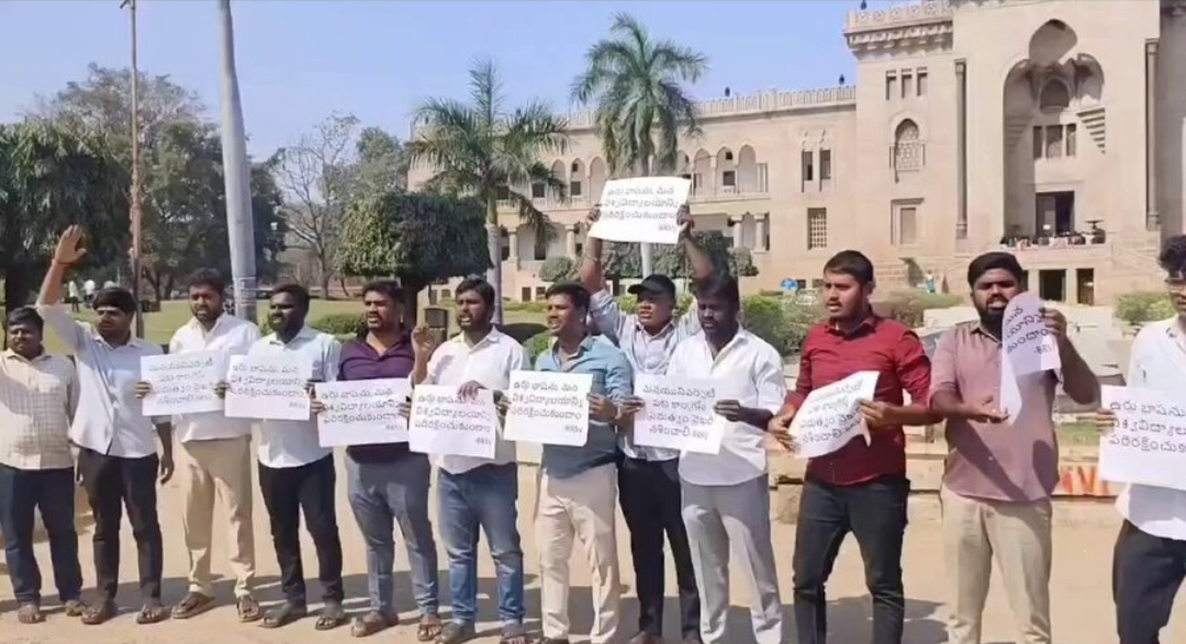 حیدرآباد _ حیدرآباد میں عثمانیہ یونیورسٹی کے طلبہ نے مولانا آزاد نیشنل اردو یونیورسٹی کے طلبہ سے یکجہتی کا اظہار کرتے ہوئے احتجاج کیا۔ یہ احتجاج آرٹس کالج او یو کیمپس میں منعقد ہوا۔