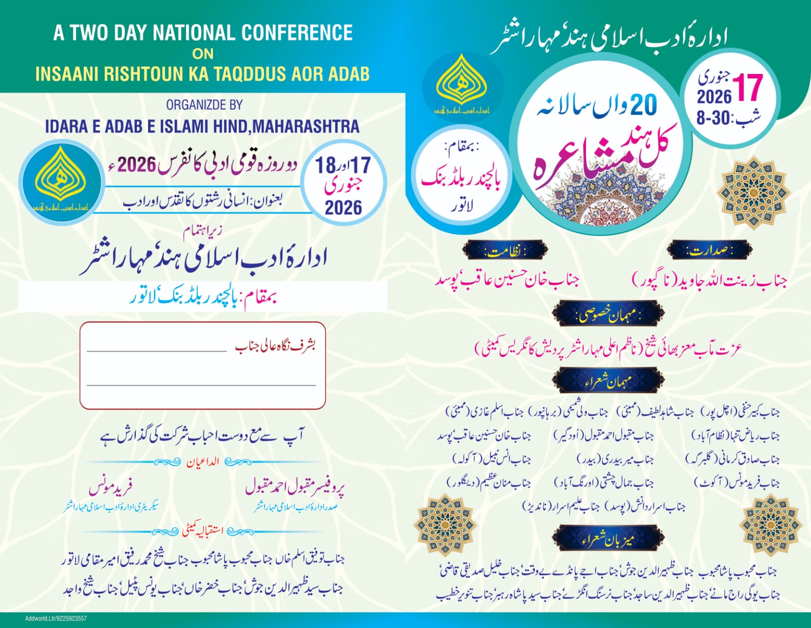 لاتور میں ادارۂ ادبِ اسلامی‌مہاراشٹر کی سالانہ کانفرنس اور مشاعرہ