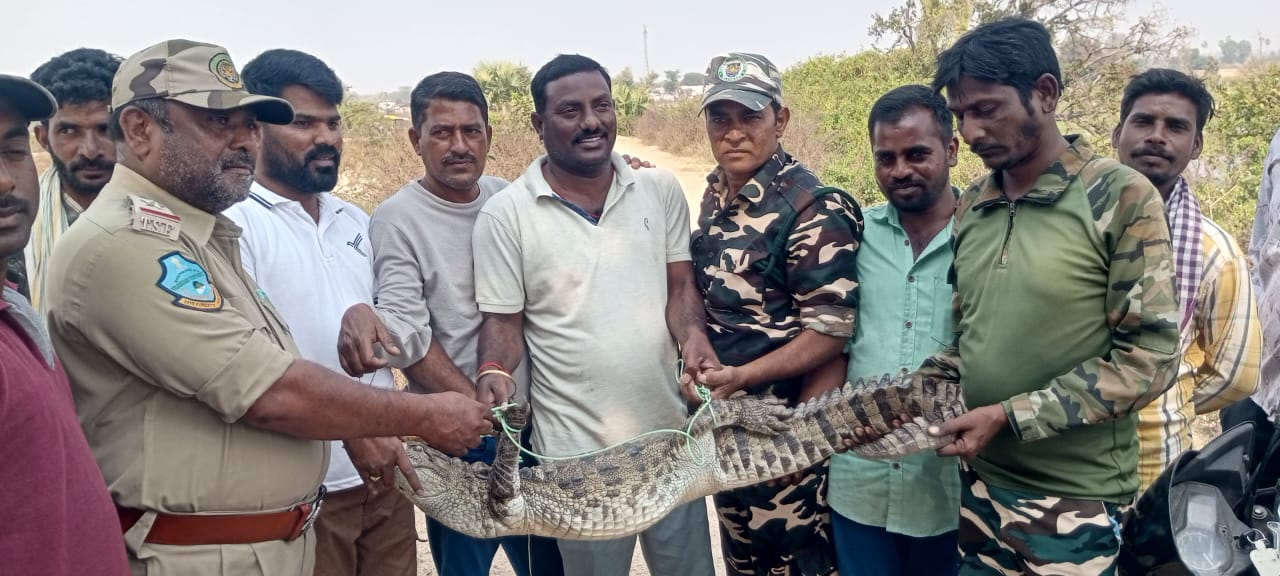 خانہ پور۔ ریاست تلنگانہ خانہ پور نیو شانتی نگر بوڈونی کنٹہ سے ایک مگر مچھ کو پکڑ کر محکمہ جنگلات کے حکام کے حوالے کردیا گیا۔