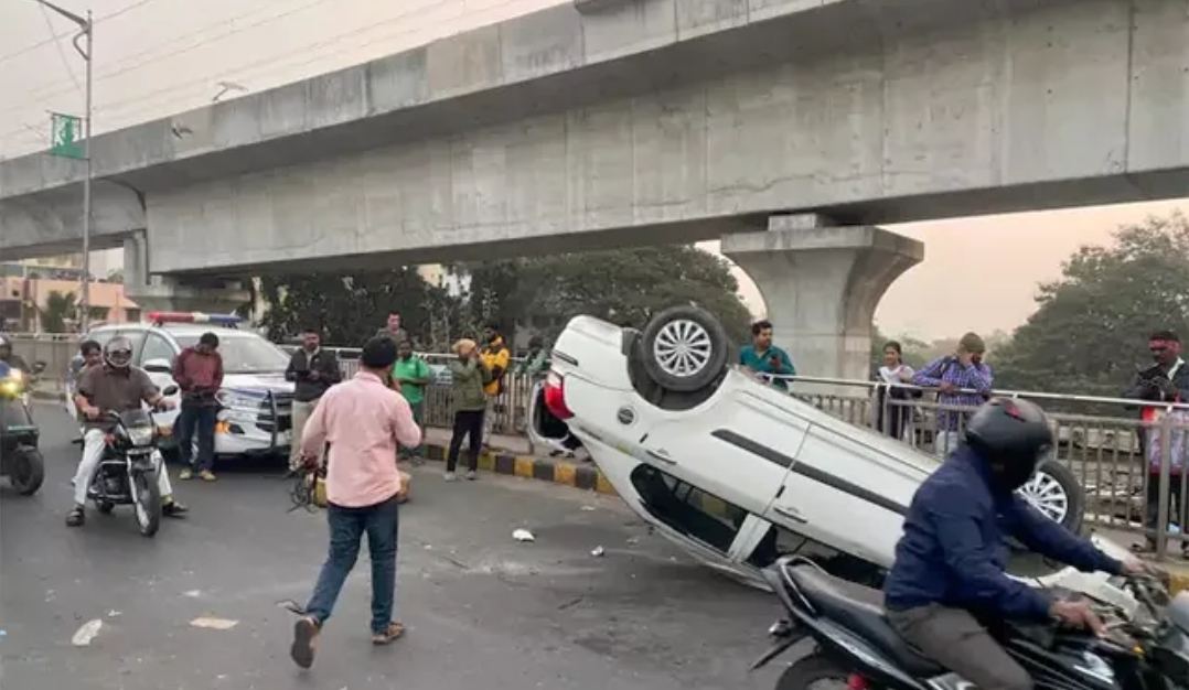 حیدرآباد ۔ چہارشنبہ کی علی الصبح شہر کے بیگم پیٹ فلائی اوور سے ایک کار الٹ کر نیچےسڑک پر گر پڑی۔