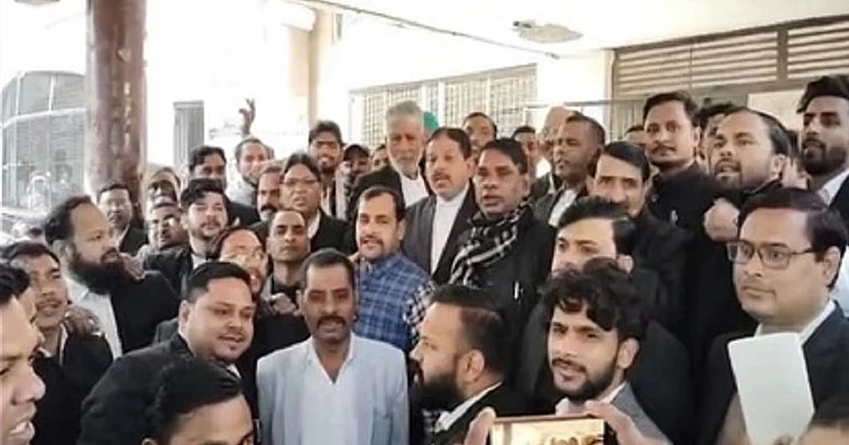 سنبھل: انوج چودھری کے خلاف ایف آئی آر درج کرنے کا حکم دینے والے جج کے تبادلے سے ناراض وکلاء کا عدالت کے باہر احتجاج