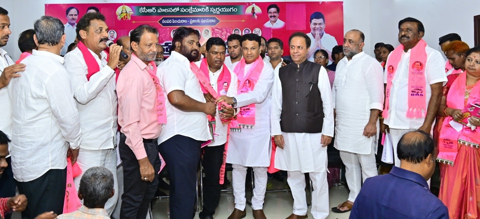 نظام آباد:23/جنوری (اردو لیکس)حرکیاتی نوجوان وسماجی کارکن مسٹر شیخ سمیع الدین نے اپنے سینکڑوں مردوخواتین کے ہمراہ آج بی آر ایس پارٹی دفتر پہنچ کر صدر ضلع اقلیتی سیل نوید اقبال کی قیادت میں سابق رکن اسمبلی نظام آباد اربن بیگالہ گنیش گپتا کے ہاتھوں کھانڈوا پہن کر بی آر ایس پارٹی میں شمولیت اختیار کرلی۔