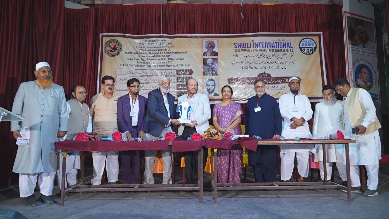 حیدرآباد(راست)شبلی انٹرنیشنل ایجوکیشنل اینڈ چیرٹیبل ٹرسٹ، حیدرآباد کے زیرِ اہتمام اور شعب اردو، گورنمنٹ سٹی ڈگری کالج (A)، حیدرآباد کے تعاون سے سہ لسانی (اردو، عربی، فارسی) دو روزہ عالمی سیمینار بعنوان”علامہ شبلی نعمانیؒ، مہاراجہ سر کشن پرشاد، ڈاکٹر محمد حمید اللہؒ کی فکری جہات“بمقام اعظم ہال آڈیٹوریم، گورنمنٹ سٹی کالج، حیدرآباد منعقد ہوا۔سیمینار کا افتتاحی اجلاس 02 جنوری 2026 کو منعقد ہوا