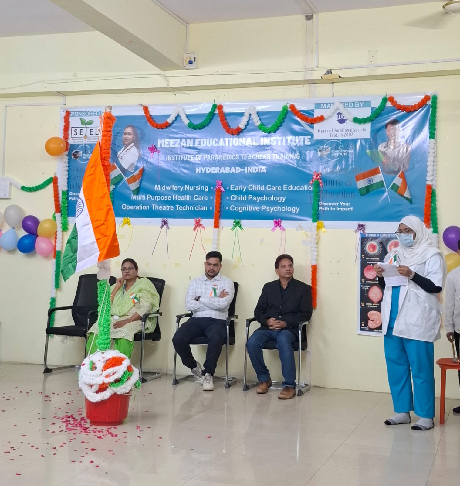 حیدرآباد(راست)میزان کالج آف پیرا میڈکس، حیدرآباد میں ملک کا 75واں یومِ جمہوریہ نہایت جوش و خروش، قومی جذبے اور وقار کے ساتھ منایا گیا۔ اس موقع پر ایک پروقار تقریب کا انعقاد عمل میں آیا
