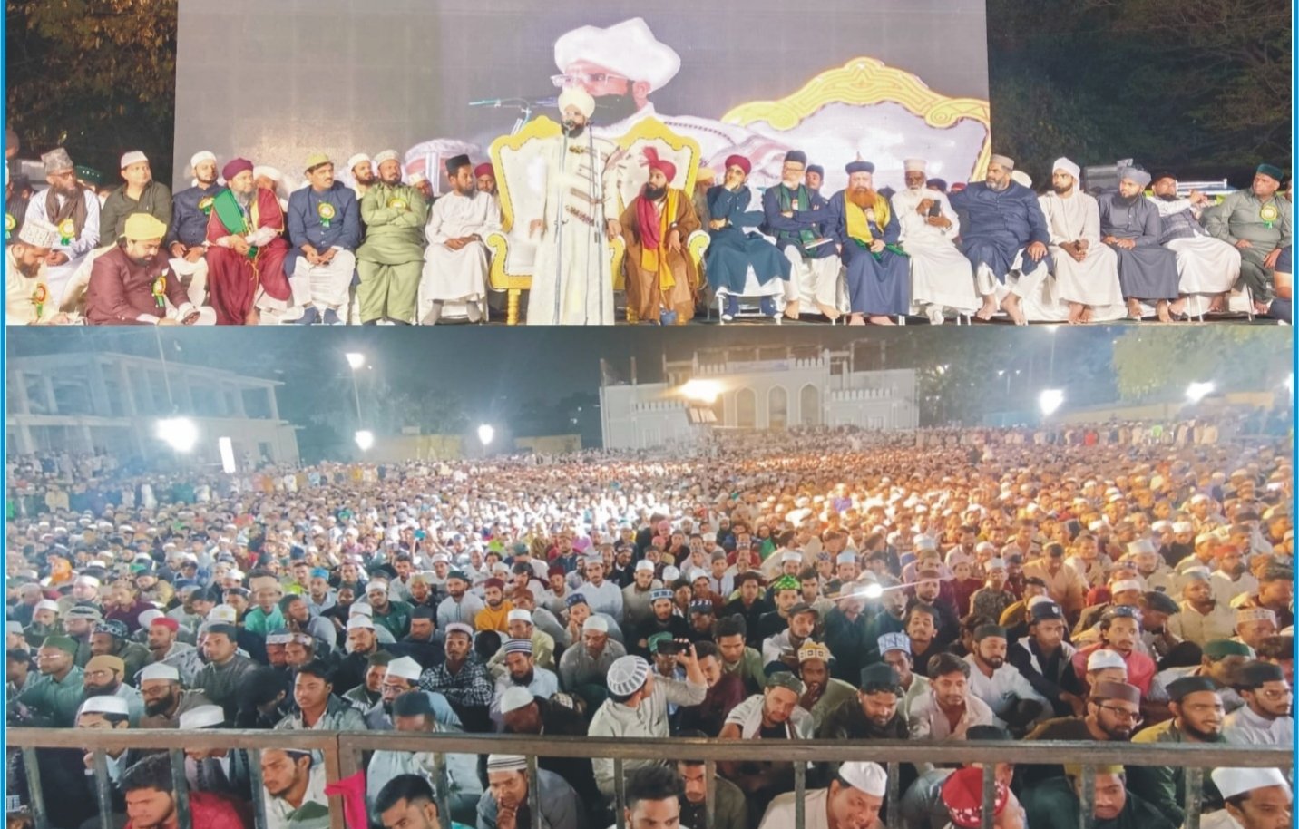 فرزندانِ توحید کا ہجوم اس بات کی دلیل ہے کہ حیدرآباد دکن میں ہی نہیں بلکہ سارے ہندوستان میں کل ہند مرکزی رحمت عالم کمیٹی اپنی دینی خدمات کی وجہ سے معروف ہوچکی ہے ۔ اللہ پاک مزید کامیابیاں عطا فرمائے ۔ آج کی رات بڑی فضیلت واہمیت والی رات ہے ، ہمیں اپنے ایمان کا تحفظ سب سے ضروری ہے کیونکہ گناہوں کے فتنے ہر طرف سے مسلمانوں کو نشانہ بنارہے ہیں ۔ کہیں شراب عام ہوچکی ہے ، کہیں زنا عام ہوچکا ہے