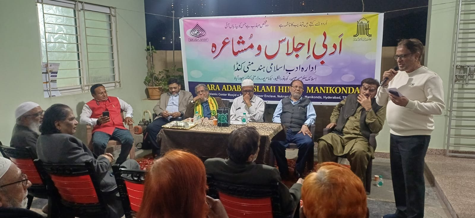 جو “ادارہ ادب اسلامی” لنکو ہلز ایونیوُی، منی کونڈا حیدرآباد میں منعقدہ ادبی محفل و مشاعرہ میں شریک تھے۔سنئیر شاعر طاہر گلشن آبادی نے اس تقریب کی صدارت کی جب کہ ڈاکٹر محسن جلگانوی، ڈاکٹر روف خیر، طاہر بلال اور سیف نظامی نے بحثیت مہمانان خصوصی شرکت کی۔ داعی محفل خواجہ مسیح الدین ابو بنیل نائب صدر ادارہ ادب اسلامی ہند نے مہمانوں کا استقبال کیا۔ تقریب کا آغاز ڈاکٹر نعیم سلیم کی قرات کلام پاک سے ہوا۔