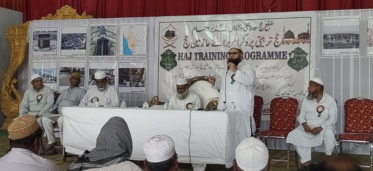 ضلع حج سوسائٹی جنگاؤں کی جانب سے متحدہ ضلع ورنگل کے عازمین حج کا ایک روزہ تربیتی پروگرام بصدارت حضرت مولانا عبدالحفیظ صاحب قاسمی صدر ضلع حج سوسائٹی جنگاؤں منعقد ہوا اس پروگرام کا اغاز مولانا فصیح الاسلام قاسمی کی تلاوت اور محمد خواجہ مجتہد الدین کی نعت سے ہوا۔ ابتدا میں صدارتی خطاب میں مولانا عبدالحفیظ صاحب قاسمی نے حجاج کرام کو صبر اختیار کرنے کی تلقین کی
