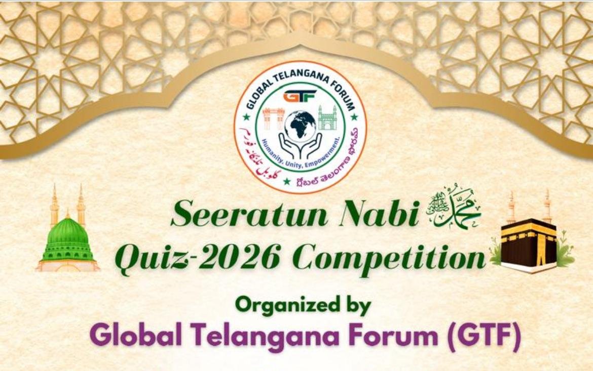 گلوبل تلنگانہ فورم ریاض حسب رویت امسال بھی سیرت النبیٌ کوئز مقابلون کا اہتمام کرے گا۔ فورم کے صدر عبدالجبار انّا کے مطابق فورم اپنے سالانہ کوئز مقابلون کا انعقاد جمعہ 20 فروری 2026 بوقت 2 بجے دن عمل میں لائے گا۔