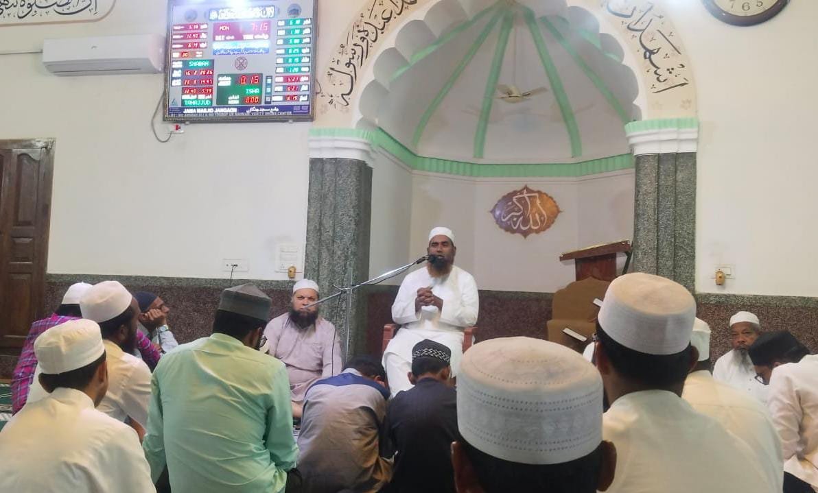 انہوں نے حاضرین سے خاص طور پر رمضان میں اوقات کی حفاظت کرنے اور عبادتوں میں زیادہ سے زیادہ وقت صرف کرنے کا مشورہ دیا مہمان خصوصی جمیعت العلماء ضلع ورنگل کے جنرل سیکرٹری مولانا مفتی محمد زکریا قاسمی نے اپنے خطاب میں فرمایا کہ رمضان کو قران سے خاص نسبت ہے اور رمضان میں قران کی جتنی تلاوت کی جائے اللہ سے اتنا تعلق مضبوط ہوگا انہوں نے فرمایا کہ ہمارے اکابرین ہمارے علمائے کرام ہمارے بزرگان دین اولیائے عظام کا معمول رمضان میں کئی کئی قرانوں کی تکمیل کا تھا ہمیں بھی اپنے فارغ وقت میں قران کی تلاوت کو اپنا معمول بنا لینا چاہیے