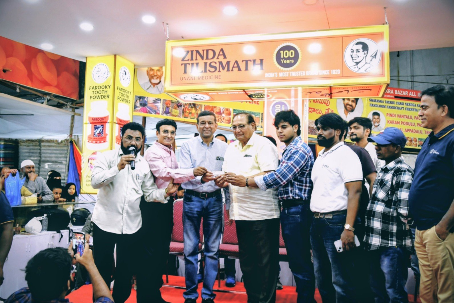 اور آج ٹوتھ پیسٹس کی تیاری میں نمک استعمال کرنے کے لئے مجبور ہونا پڑا ہے۔ جناب سہیل فاروقی نے اس بات پر مسرت اور طمانیت کا اظہار کیا کہ مختلف وبائی امراض میں زندہ طلسمات نہ صرف سب سے زیادہ کارکرد ہوتا ہے بلکہ عوام بھی اسی کو ترجیح دیتے ہیں۔ اس موقع پر نمائش میں زندہ طلسمات اسٹال پر انعامات کے کوپن کی قرعہ اندازی کی۔ نمائش سوسائٹی کے سکریٹری بی این راجیشوراور وائس پریسیڈینٹ آر سکیش ریڈی کے علاوہ ارمان فاروقی نے قرعہ اندازی کی۔