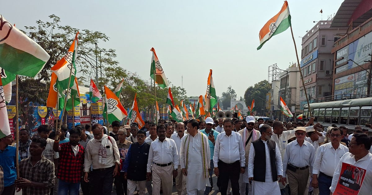 اگرتلہ: بی جے پی زیرقیادت مرکزی حکومت پر مہاتما گاندھی قومی دیہی روزگار گارنٹی ایکٹ (منریگا) کو کمزور کرنے اورمنصوبہ بند طریقے سے واپس لینے کا الزام لگاتے ہوئے اپوزیشن کانگریس نے اگرتلہ میں زبردست ریلی نکالی اور حکومت کی عوام مخالفت پالیسیوں کی تنقید کی۔ کانگریس کے جھنڈے اور بینر سے رنگین سوامی وویکانند میدان سے شروع ہونے والی اس ریلی میں پارٹی کے سینئر رہنماؤں کی قیادت میں کانگریس کے سینکڑوں حامیوں نے شرکت کی۔ حالانکہ لوک بھون (گورنر ہاؤس) کی طرف مارچ کرنے والے مظاہرین کو پولیس نے سخت سیکورٹی کے درمیان بدھ مندرعلاقے میں روک دیا۔