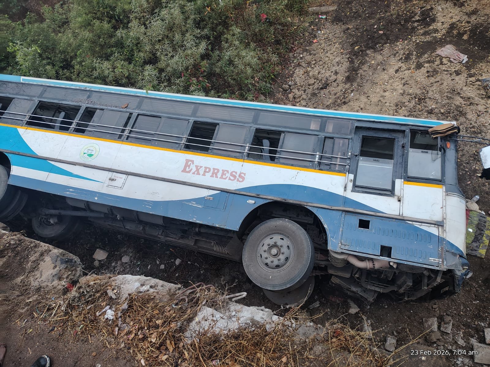 عادل آباد ضلع کے اُٹنُور منڈل میں پیر کی صبح ایک آر ٹی سی بس حادثے کا شکار ہو گئی۔ شانپور کے قریب واقع تنگ پل پر بس بے قابو ہو کر کنال میں جا گری۔ بتایا جارہا ہے کہ حادثے کے وقت بس میں تقریباً 35 مسافر سوار تھے۔