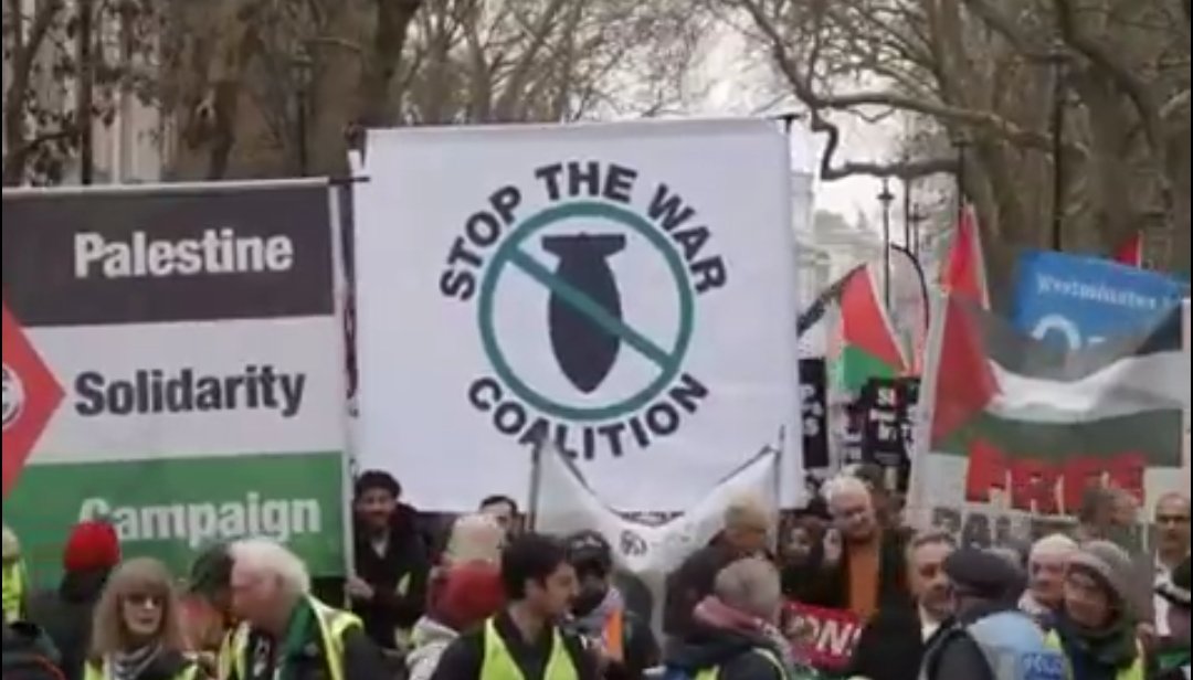 احتجاجیوں نے مزید کہا کہ United Kingdom کو United States کی اندھی پیروی نہیں کرنی چاہیے اور Iran میں حکومت کی تبدیلی کے لیے کسی حملے کا کوئی جواز موجود نہیں ہے۔