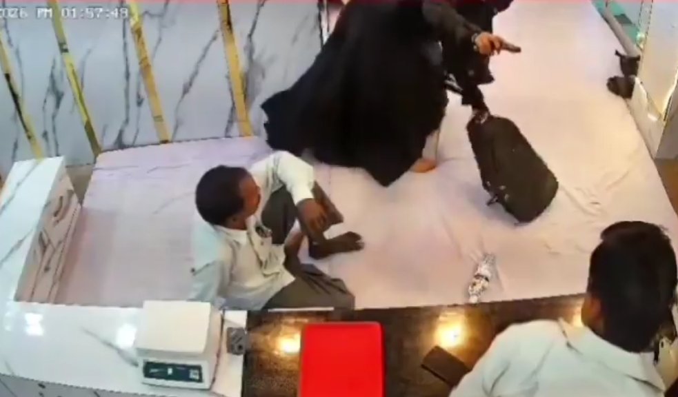 حیدرآباد ۔ برقعہ پہنے ایک خاتون جیولری شاپ میں داخل ہوئی۔ اس نے سونے کے زیورات خریدنے کے بہانے انہیں غور سے دیکھا۔ اچانک اس نے بندوق تان لی اور ٹرے میں رکھے سونے کے زیورات اٹھا کر فرار ہو گئی۔ اس واقعے کی ویڈیو کلپ سوشل میڈیا پر وائرل ہو گئی ہے۔