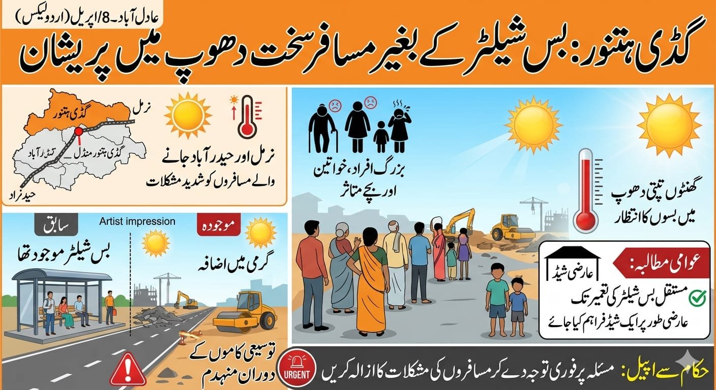 موجودہ موسمِ گرما میں درجہ حرارت میں مسلسل اضافہ ہو رہا ہے، اور مناسب سایہ نہ ہونے کے باعث مسافروں کو تپتی دھوپ میں گھنٹوں بسوں کا انتظار کرنا پڑ رہا ہے۔ خاص طور پر بزرگ افراد، خواتین اور بچے شدید گرمی سے متاثر ہو رہے ہیں۔