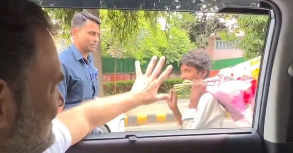 سڑک پر نظر آئی ’محبت کی دکان‘، پھول فروخت کرتے بچے نے راہل گاندھی سے پوچھا ’ہاؤ آر یو؟‘