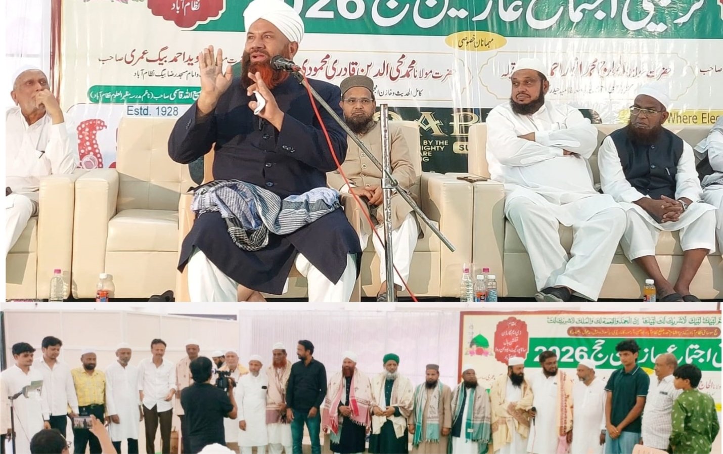 نظام آباد میں عازمین حج کے تربیتی اجتماع سے حضرت مولانا الحاج محمد انور صاحب قبلہ و حضرت مولانا محی الدین قادری محمودی صاحب و دیگر علماء کرام کا خطاب