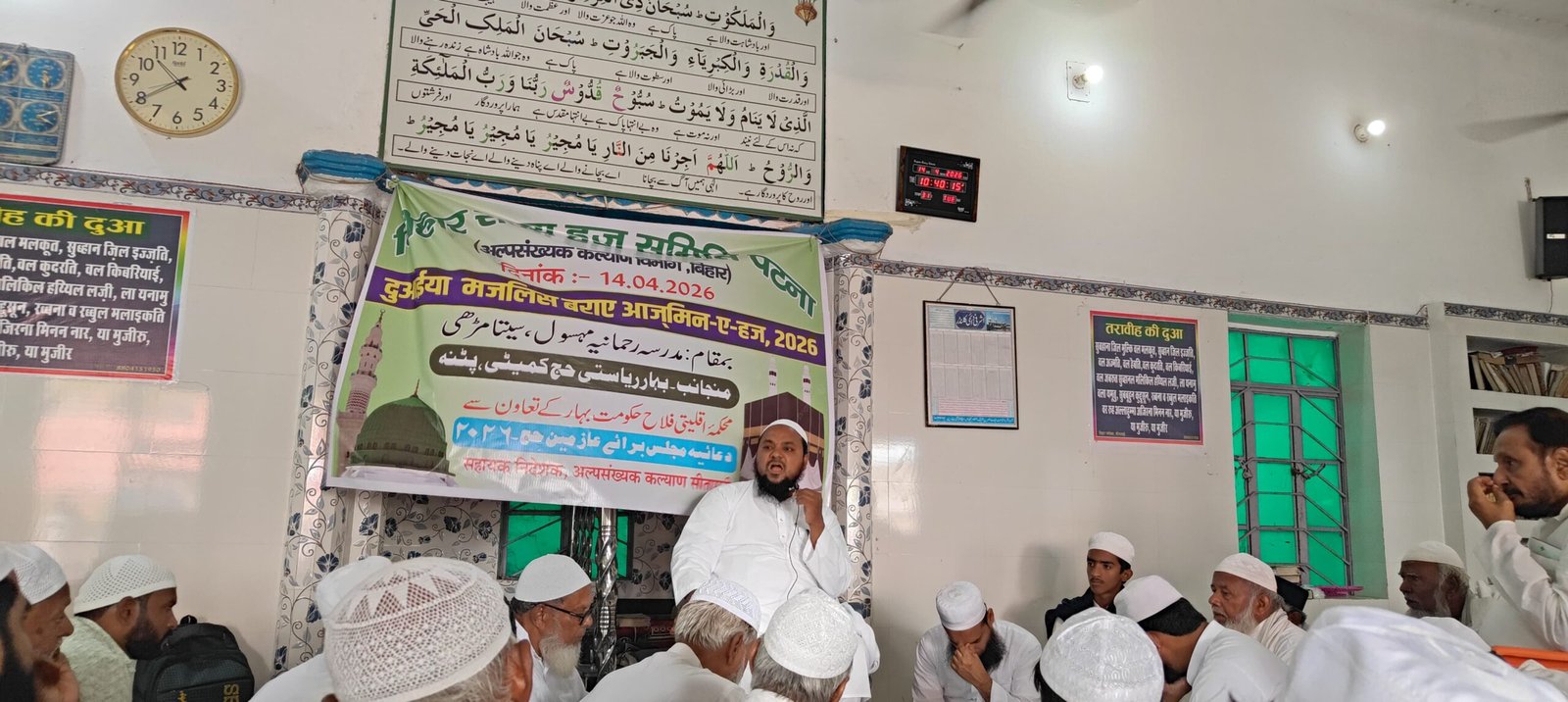 سیتامڑھی: بہار ریاستی حج کمیٹی، پٹنہ کی جانب سے محکمہ اقلیتی فلاح حکومت بہار کے تعاون سے مدرسہ رحمانیہ مہسول سیتامڑھی میں عازمینِ حج 2026 کے لئے ایک بامقصد، روح پرور اور معلوماتی دعائیہ و تربیتی مجلس کا انعقاد کیا گیا۔ اس پروگرام میں عازمینِ حج کے ساتھ ساتھ علاقے کے علماء، ائمہ، دانشوران اور عوام کی بڑی تعداد شریک ہوئی۔