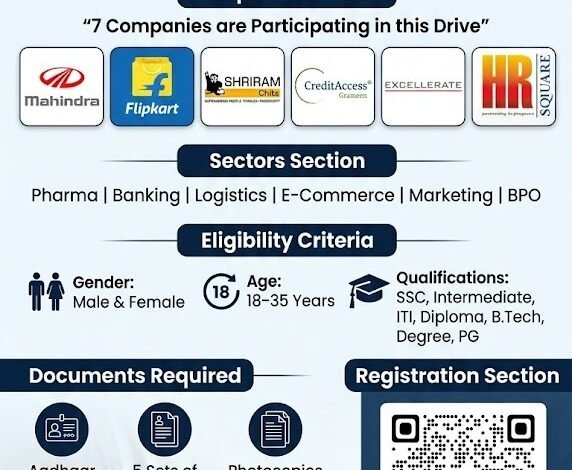 اس جاب میلے میں مہندرا موٹرس، فلپ کارٹ،شری رام چٹس،کریڈٹ ایکسس ایچ آر اسکوائر کی جانب سے فارما بنکنگ لاجسٹکس ای کامرس مارکیٹینگ اور دیگر شعبہ جات میں فوری انٹرویو کے بعد پرکشش ملازمتیں نوجوانوں کو فراہم کی جارہی ہیں۔18سے35سال کی عمر کے نوجوان لڑکوں اور لڑکیوں کے لیے ملازمتیں فراہم کی جارہی ہیں