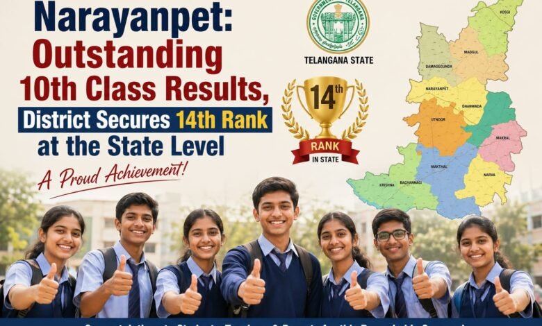 نارائن پیٹ: 29 اپریل (اردو لیکس) ریاست تلنگانہ کے بورڈ آف اسکول ایجوکیشن کی جانب سے آج جاری کردہ نتائج کے مطابق دسویں جماعت کے سالانہ امتحانات میں ضلع نارائن پیٹ نے نمایاں کارکردگی کا مظاہرہ کرتے ہوئے ریاستی سطح پر 14واں مقام حاصل کر لیا ہے۔ اس کامیابی نے نہ صرف تعلیمی حلقوں بلکہ عوامی سطح پر بھی خوشی اور اطمینان کی لہر دوڑا دی ہے۔