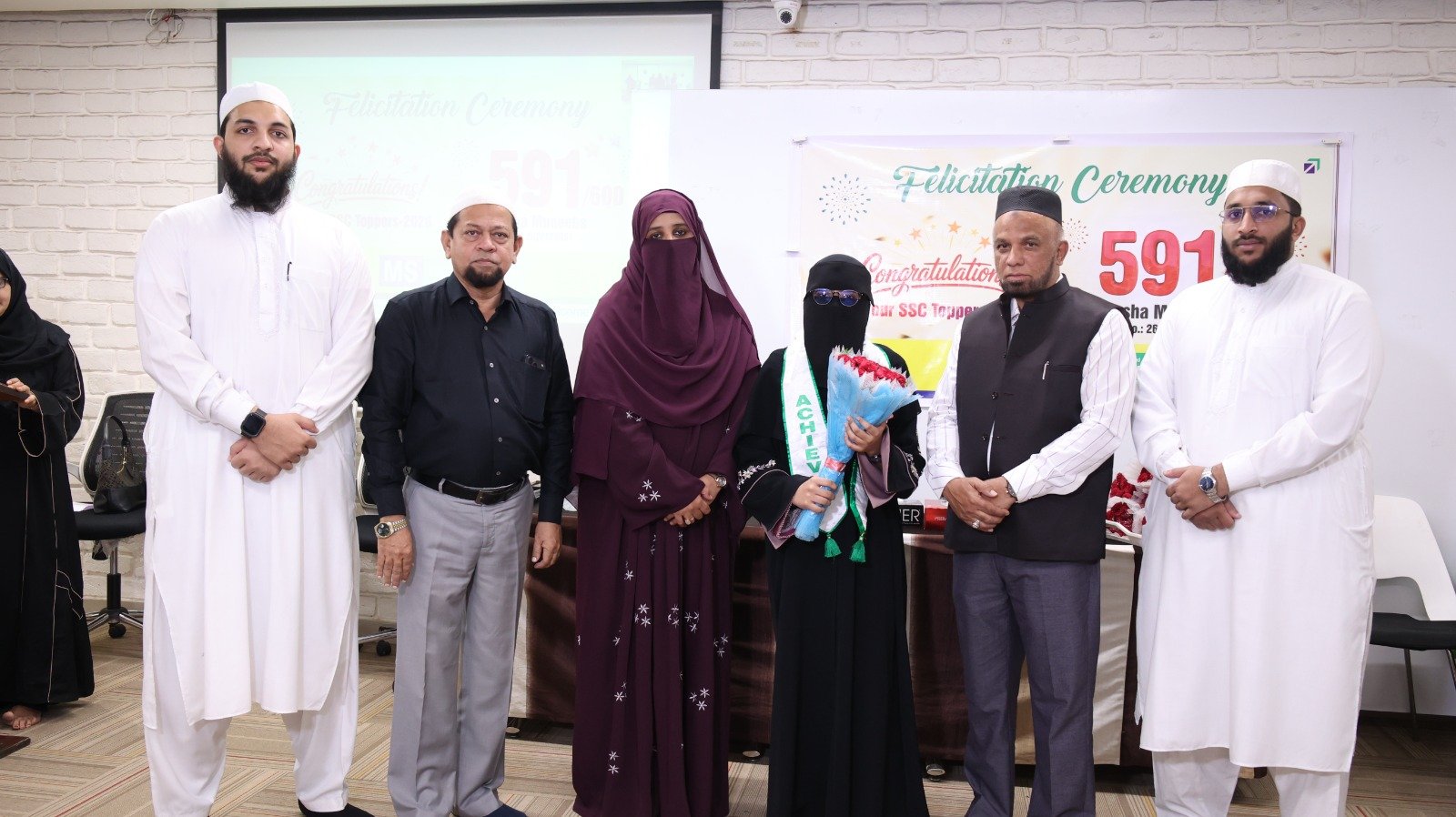 حیدرآباد،30اپریل( پریس ریلیز)ایم ایس ایجوکیشن اکیڈیمی نے ایس ایس سی امتحانات میں شاندار کامیابی حاصل کرتے ہوئے مثال قائم کرنے والی ایس ایس سی ٹاپر عائشہ منیبہ کو غلام رسول خان ایوارڈ اور 25ہزار روپئے انعام دینے کا اعلان کیاہے، عائشہ منیبہ نے 600 میں سے 591 مارکس حاصل کئے ۔ یہ اعلان ایم ایس ایجوکیشن اکیڈیمی کے زیراہتمام ایس ایس سی2026 SSC کے کامیاب طلبہ کے لیے ایک پروقار تہنیتی تقریب کے دوران کیاگیا۔ اس موقع پران کے والدین اور اساتذہ کو بھی مدعو کیا گیا تھا۔