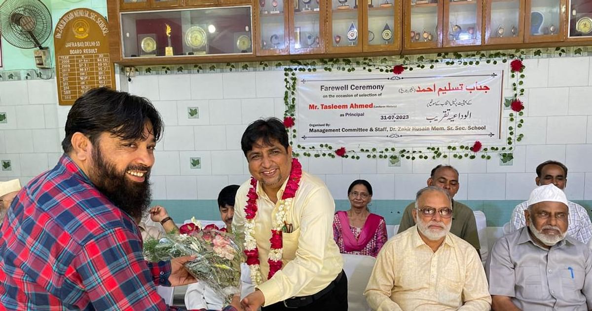 نئی دہلی: مینجمنٹ کمیٹی اینڈ اسٹاف ڈاکٹر ذاکر حسین میموریل سینئر سیکنڈری اسکول جعفر آباد کی جانب سے تسلیم احمد (لیکچرر تاریخ) کے بحیثیت پرنسپل انتخاب کے موقع پر الوداعیہ تقریب کا انعقاد کیا گیا۔ دراصل ڈاکٹر ذاکر حسین میموریل سینئر سیکنڈری اسکول جعفر آباد دہلی میں تدریس کے فرائض انجام دینے والے تسلیم احمد نے جعفر آباد کے سروودے بال ودیالیہ جعفر آباد میں پرنسپل کے عہدہ کی ذمہ داری سنبھالی لی ہے۔